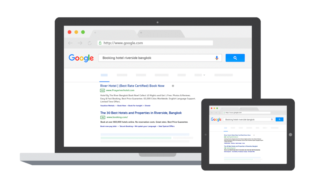 - Google Search Ads are text ads placed on Google Search, such as Google.com. The advantage is that it helps reach targeted customers because customers are already interested in the product or service and search for it on Google, so they come across our Google Search Ads as shown in the picture.